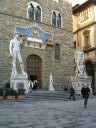 ドゥオモ フィレンツェのシンボル。観光客だったら、間違いなく立ち寄る場所。外観も素敵だが、中も素敵だ。 シニョーリア広場 ヴェッキオ宮殿(現市庁舎)、ウフィツィ美術館、ネプチューンの噴水、などなど。ドゥオモから、シニョーリア広場までの道は、店がいっぱいあり、ショッピングや食事を目的に歩き回るのも楽しい。 ジョットの鐘楼 ドゥオモの端にあるジョットの鐘楼へ登る。ここは、フィレンツェの街を眼下にすることができる。ドゥオモも間近に見ることができる場所。 ヨーロッパの教会や鐘楼は、外観こそ昔の姿を保存しているが、エレベーターが取り付けられていることが多い。しかし、ここにはエレベータはなく、階段で登る。登るのが大変なせいか、人は少ない。たしかに登るのはそこそこ大変で、途中で2,3度休憩した。一方向かいにあるドゥオモに登っている人は多い。しかしちょっと考えて欲しい。ドゥオモを間近に見ることができるのはここだけである。ドゥオモに登ったら、ドゥオモは見えない。しかも空いている。さあ、みんな登ろう!もちろんドゥオモにも登ろう。ドゥオモの方が若干だが高い位置から街を見渡すことができる。