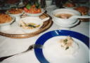 夕食@タンジン バンコクに到着したときにはすでに夕方だ。夕食はタンジンでタイの王宮料理を食べる。 タンジンはバンコクに本店と幾つかの支店があるが、今回はワールドトレードセンターにある支店で タイの食事は、高級だからといっても、庶民の食事とはあまり変わらない。スプーンとフォークで食事をするスタイルも、そして食べているモノ自体もだ。強いて違いをあげるのならば、食器が高級なことと、辛さが幾分か抑えてあることくらいか。近頃は経済発展に伴いバンコクの人も昔ほど辛いものを好んで食さなくなっているということなので、辛味という点では王宮料理も庶民の料理もあまり違わない。タイの場合は、食事に限らずそういうところがある。