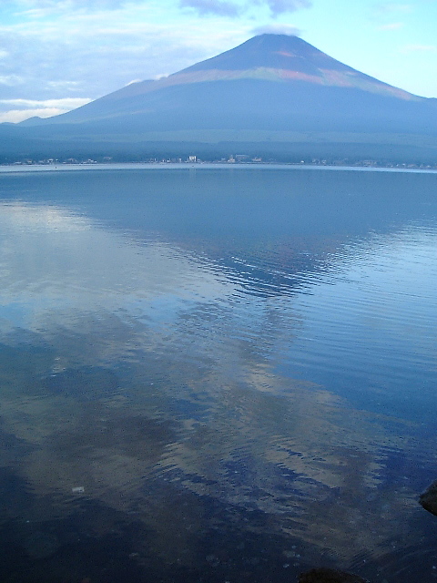 2001.7.21 湖に映る朝の空と富士(山梨県山中湖村) FinePix1700Z