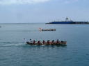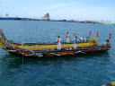 那覇ハーリー 食事のあと、まだ飛行機までは時間がある。そこで、丁度5月3日から5日に那覇の亜謝(あじゃ)新港で行われている那覇ハーリーを見に行った。那覇ハーリーは、500年もの歴史がある豊漁と海の安全のお祭り。レースだけでなく、様々なお店が出たり、ショーが開かれ、大変にぎやかだ。沖縄最終日に、偶然にも見ることが出来、いい思い出となった。